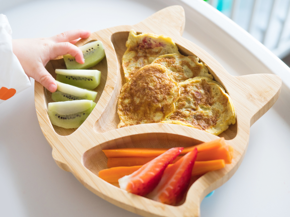 Pancakes are easy for babies to grab and eat. Use any type of leftover cooked grain you have on hand and make them for the whole family. Babies learn best when eating what everyone else is eating in the family.
