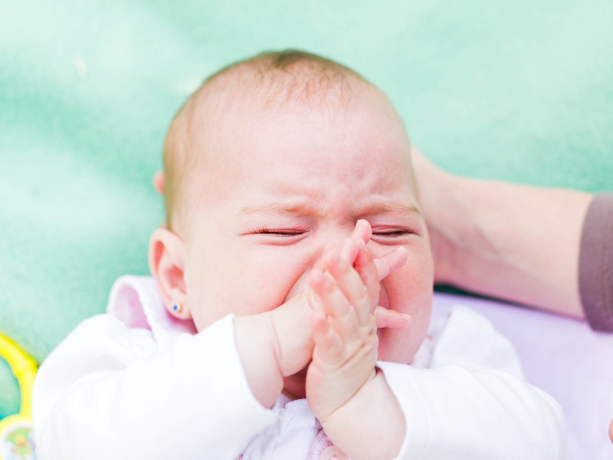 If your baby is crying and is rubbing their eyes or has droopy eyelids, they may be tired. Try putting baby down for a nap.